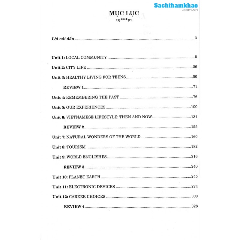 Cuốn sách gồm 12 đơn vị bài học và 4 bài ôn tập.