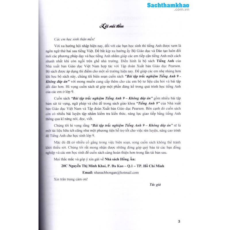 Để giúp các em nhẹ nhàng hơn khi học bộ sách này, tác giả biên soạn bộ sách "Bài tập trắc nghiệm Tiếng Anh - Không đáp án" với mong muốn cung cấp thêm cho các em học sinh cũng như giáo viên tự liệu câu hỏi và bài tập dồi dào hơn.