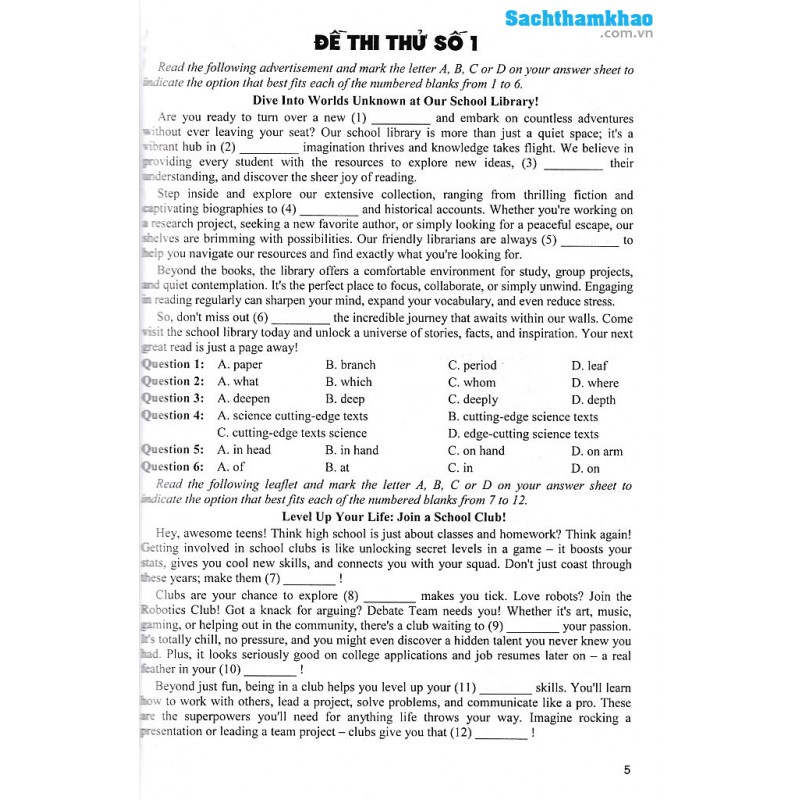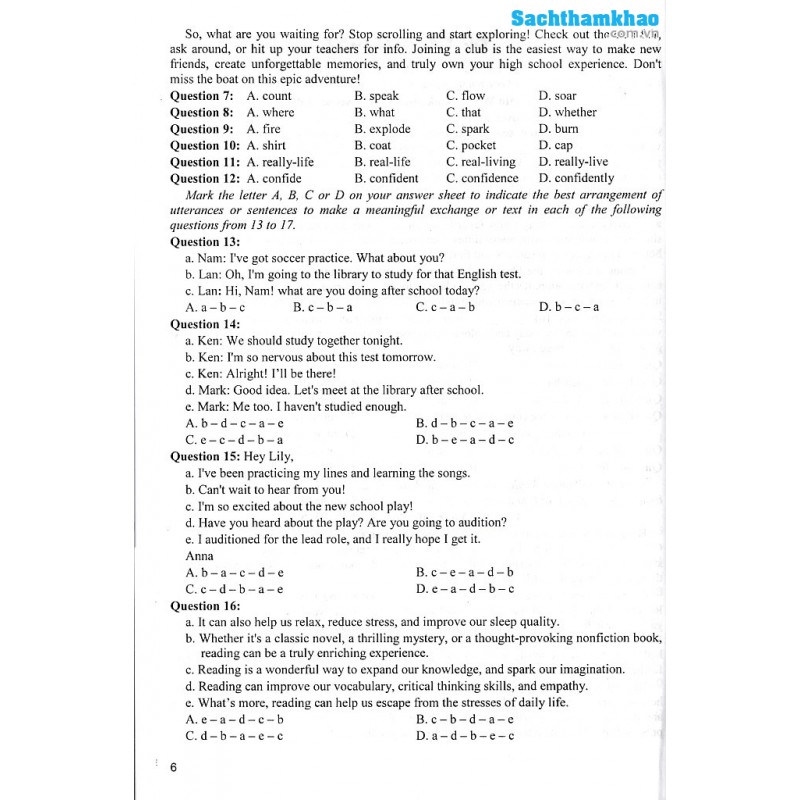 Bên cạnh đó, sách còn giúp rèn luyện kỹ năng đọc hiểu, ngữ pháp, từ vựng và tư duy làm bài tiếng Anh thông qua các dạng câu hỏi đa dạng, bám sát đề minh họa. Với phương pháp luyện tập hợp lý cùng định hướng “Practice makes perfect”, đây là cuốn sách không thể thiếu cho học sinh lớp 12 chuẩn bị cho kỳ thi quan trọng sắp tới.
