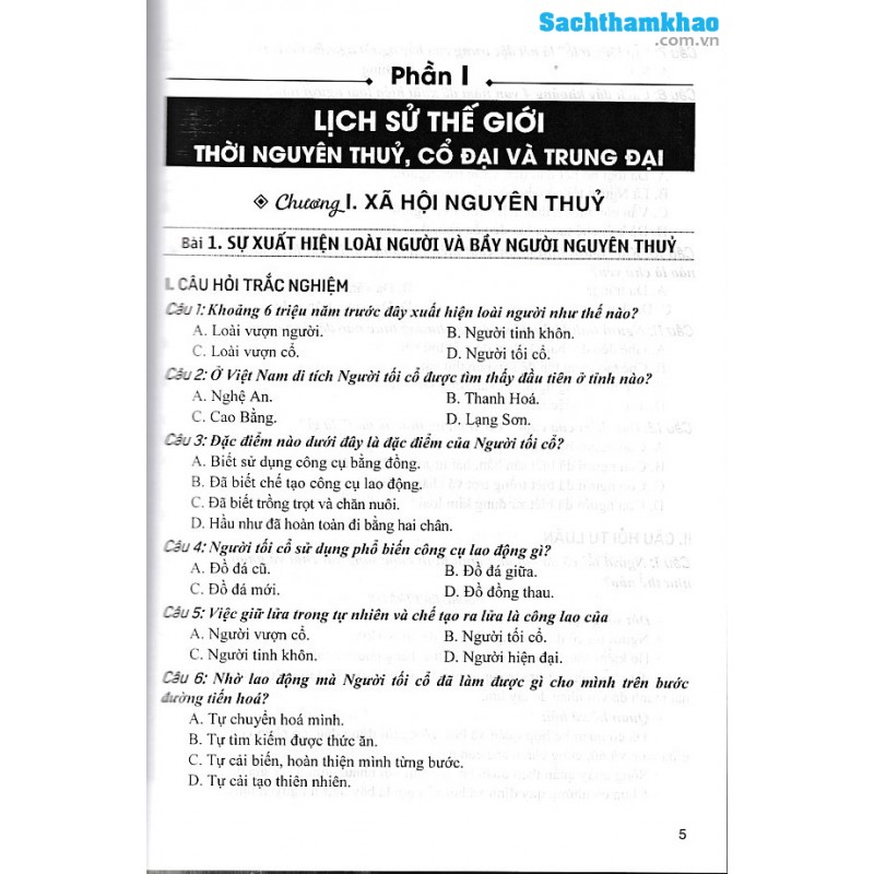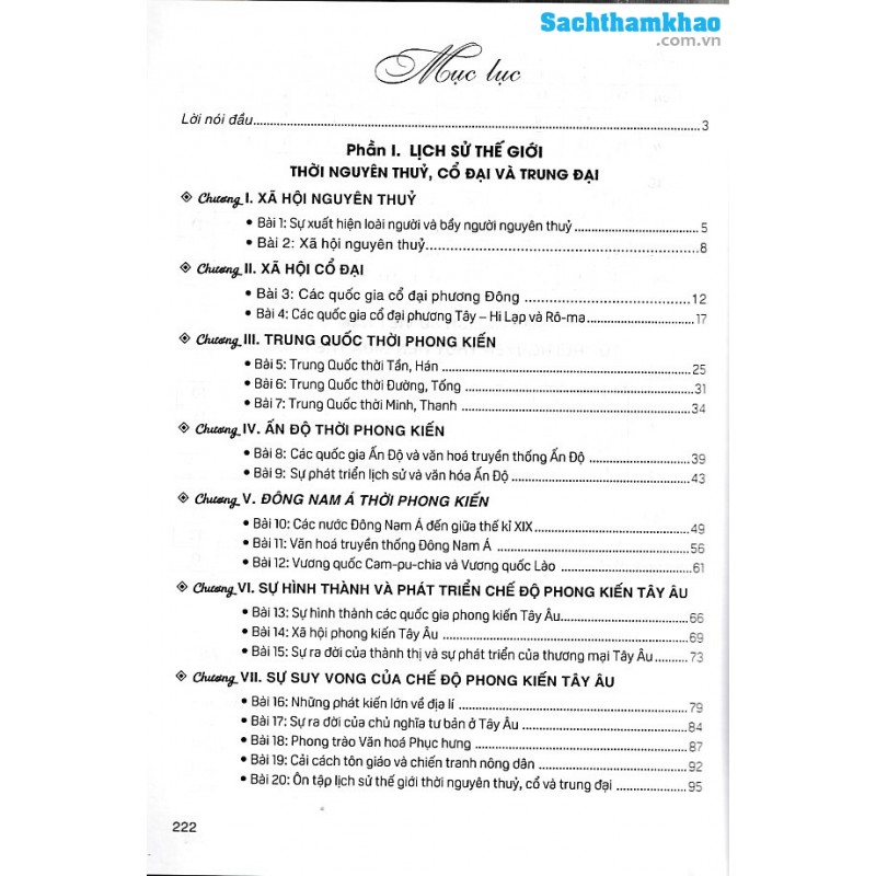 - Phần 1: Lịch sử thế giới thời nguyên thủy, cổ đại và trung đại.
