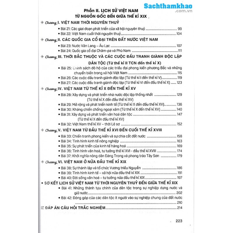 - Phần 2: Lịch sử Việt Nam từ nguồn gốc đến giữa thế kỉ XIX.